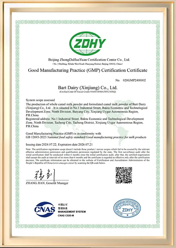 EASTBART has advanced production technology, which fully preserves the rich nutrients in camel milk, such as protein, vitamins (such as A, D, E, and B - complex vitamins), and minerals (calcium, iron, zinc, etc.). From milk source collection to production and transportation, the entire process strictly follows the quality system standards.