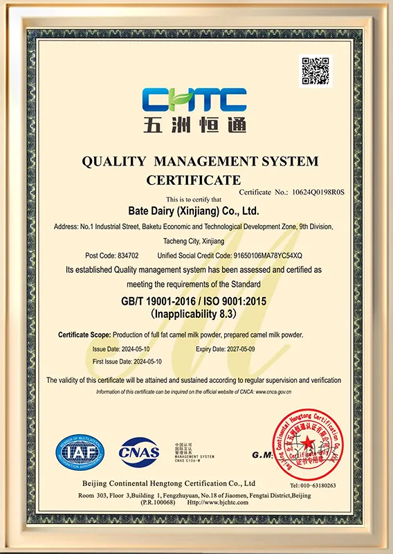 The raw milk materials of YiBaTe camel milk powder is purchased by the milk station, relevant items will be tested, and the national food safety standard of raw milk GB19301-2010 will be strictly implemented.